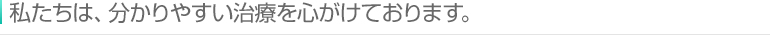 私たちは、どのような治療を施すか、患者様の意向を踏まえつつ、患者様にとって一番の治療法をご提案し、ご納得いただいてから治療をさせていただきます。